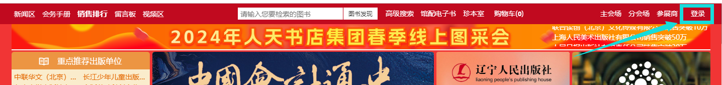 1. 主会场:其右上角展示图书采会开幕式领导讲话及平台消息发布。其他板块主要展示重点出版社书目,直接点击出版社名称即可进入选书界面。