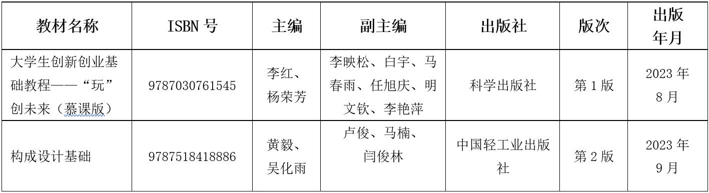 365官网教师编写的《大学生创新创业基础教程——“玩”创未来》(慕课版)与《构成设计基础》教材已入选首批“十四五”职业教育国家规划教材名单。根据《云南省教育厅关于组织开展“十四五”职业教育省级规划教材建设工作的通知》中“我省入选首批‘十四五’职业教育国家规划教材名单经复核后列入省级规划目录”的要求,现予以公示。