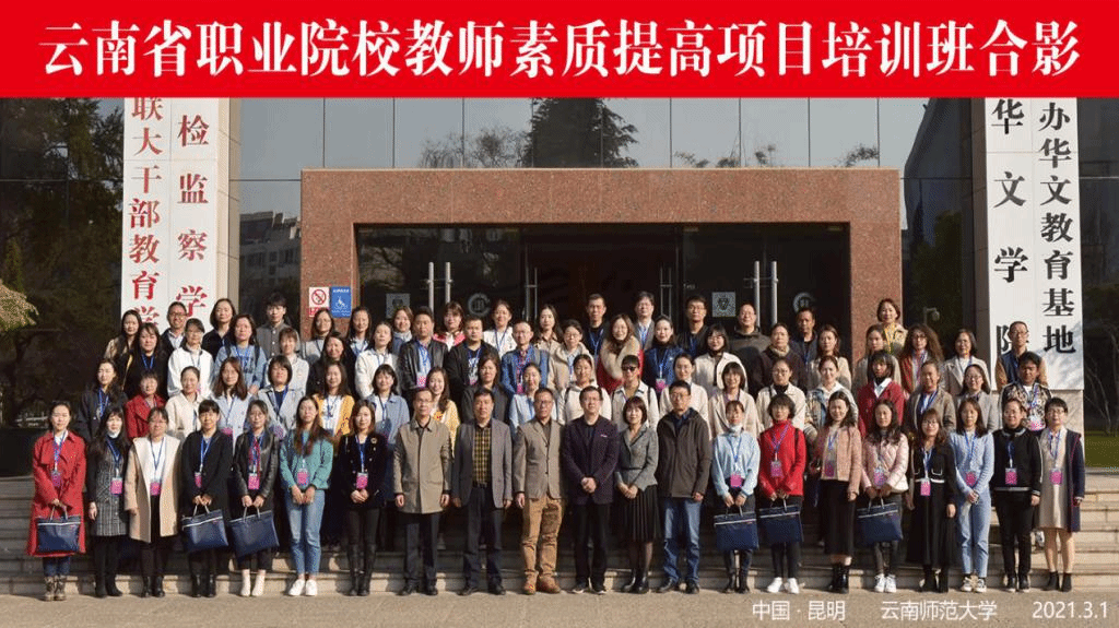3月1日上午,由云南省教育厅组织,365英国上市官网在线职业技术教育学院省级职业教育师资培训基地承办的云南省职业院校教师素质提高项目“高等职业教育教科研能力提升班”“高等职业教育课程开发能力提升班”和“中职语文课教师能力提升班”三个培训班开班教育活动在365官网一二一西南联大校区顺利举行。