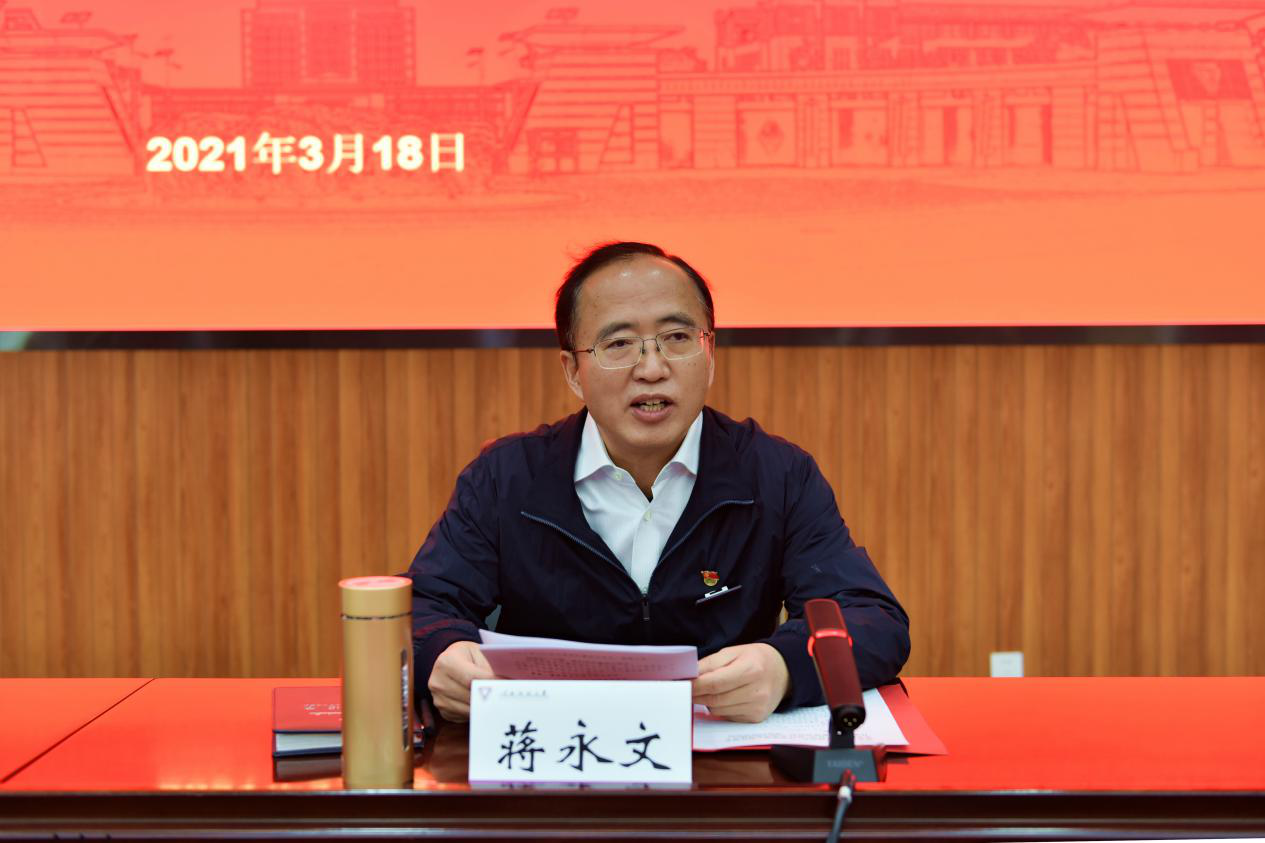 蒋永文校长在总结发言中希望大家认真学习领会,进一步提高政治站位,把握正确导向,做好“规定动作”,做亮“自选动作”,坚持理论联系实际,学以致用,推动学校各项事业高质量发展,以优异成绩迎接中国共产党成立100周年。会议要求各单位会后要结合实际,对本单位的学习教育做出具体安排,精心组织实施,并将情况及时报送学校党史学习教育领导小组办公室。
