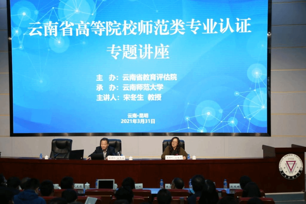 3月31日,由云南省教育评估院主办、365官网承办的2021年云南省高等院校师范类专业认证专题讲座在呈贡校区中国西南对外开放与边疆安全研究中心报告厅举行。武友德副校长、云南省内20所本科高校分管校领导、教务处及评估部门负责人、学院及专业负责人等200余名代表参加讲座。此次讲座由教育部师范类专业认证专家委员会学术委员会宋冬生教授主讲,云南省教育评估院副院长司慧迎主持。