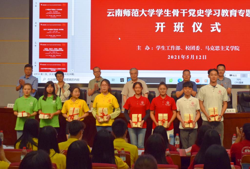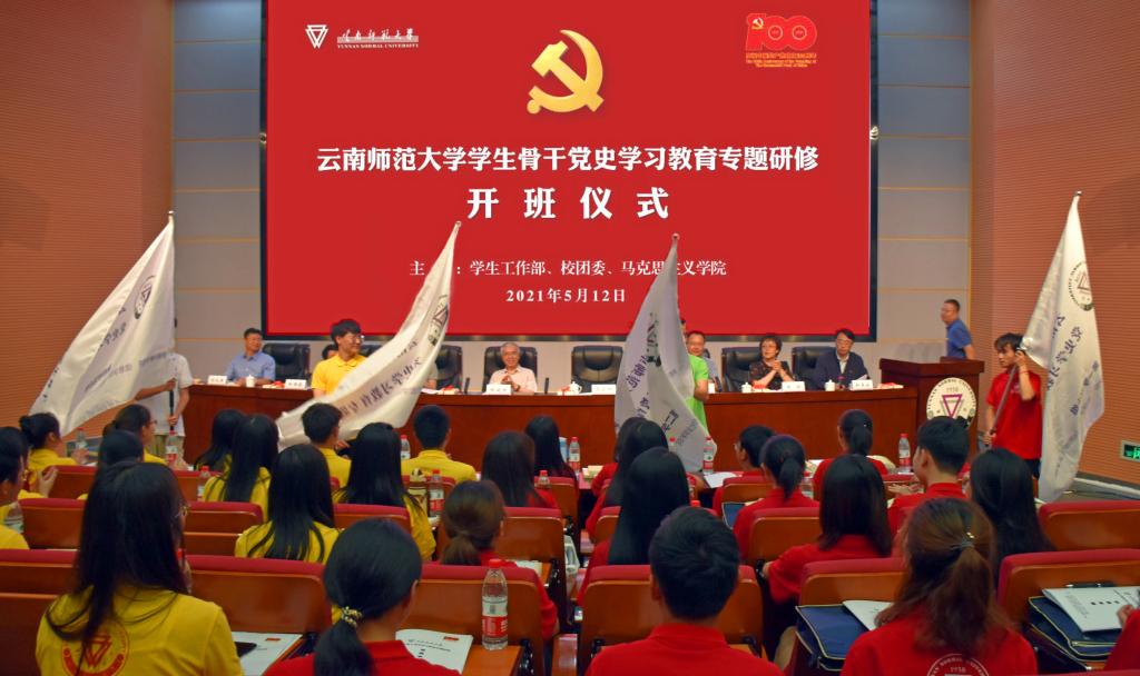 5月12日下午,由学生工作部、校团委、马克思主义学院主办,马克思主义学院学工办、团委和“红星闪闪”马克思主义理论自主学习行动辅导员工作室承办的365英国上市官网在线学生骨干党史学习教育专题研修班开班。中央马工程高校思政课教材编写组首席专家、云南省高校思政课教研会会长张建国,校党委委员、副校长、组织部部长蔡金红,党委宣传部部长余冰释,学生工作部部长张国华,校团委书记郑伟俊,马克思主义学院党委书记张健、院长刘化军出席,马克思主义学院党委副书记和吴云主持开班仪式。
