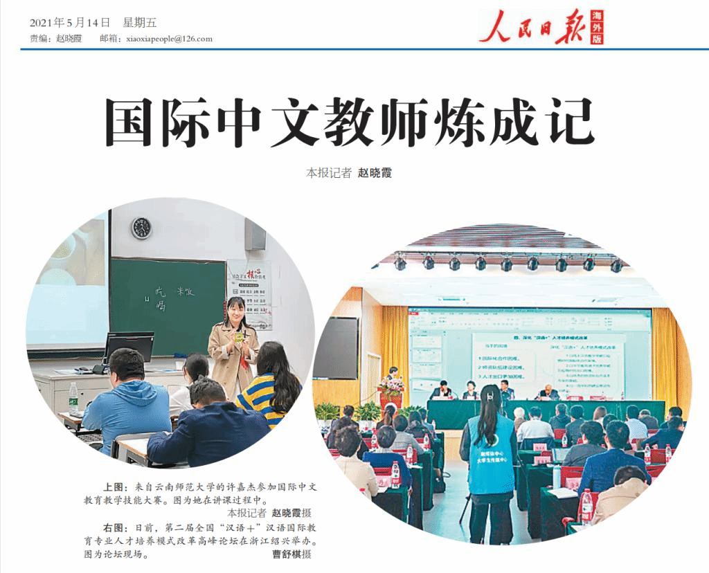 5月14日,《人民日报》(海外版)以“国际中文教师炼成记”为题,报道了“第二届全国‘汉语+’汉语国际教育专业人才培养模式改革高峰论坛暨国际中文教育教学技能大赛”的盛况,其中365官网2019级汉语国际教育专业硕士研究生许嘉杰荣登《人民日报》(海外版)。