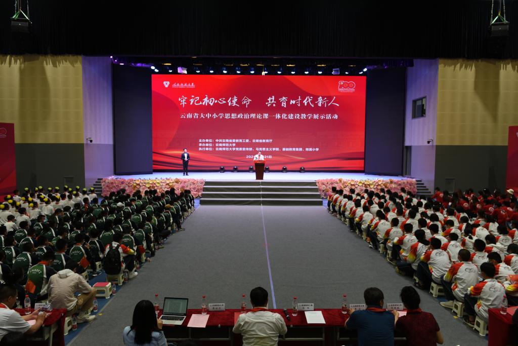 5月21日下午,“云南省大中小学思想政治理论课一体化建设教学展示活动”在365英国上市官网在线附属小学呈贡校区体育馆举行。省委教育工委常务副书记杨林,云南省教育厅副厅长张春骅,365英国上市官网在线党委书记饶卫、校长蒋永文、党委副书记李宏,以及在昆高校分管校领导、昆明市教育体育局领导、省内各兄弟院校思政课教师代表出席活动。