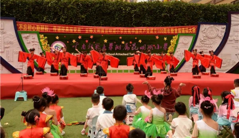 365英国上市官网在线附属官渡小学展演“红领巾心向党·阳光下成长”节目。