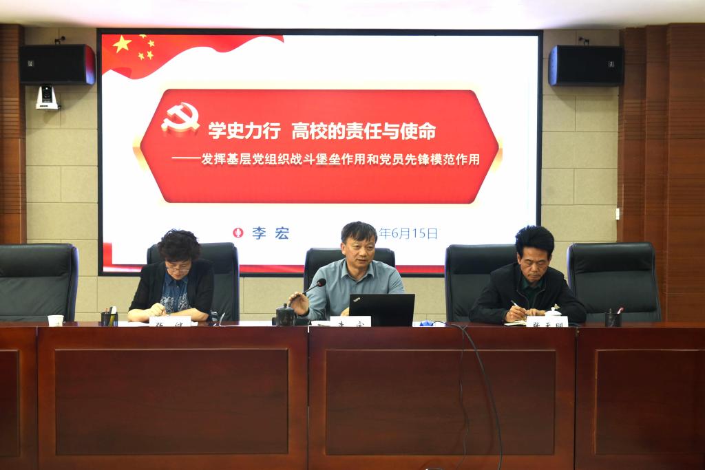 为进一步以党史学习教育为抓手,推动党的基层组织建设,充分发挥基层党组织战斗堡垒作用和党员先锋模范作用,6月15日上午,校党委李宏副书记在行政楼340会议室为党员教师上了“学史力行 高校的责任与使命”的党史学习教育专题党课。党委宣传部、研究生处、学生工作部、机关党委、党委教师工作部、校团委、西南联大博物馆、教育部高校思想政治工作队伍培训研修中心办公室、马克思主义学院、传媒学院、信息学院近60余名党员代表聆听了此次专题党课。
