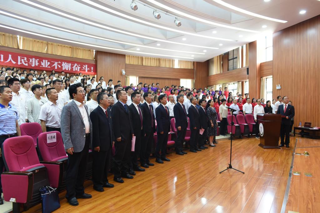 仪式伊始,全体师生党员齐唱中华人民共和国国歌,全场气氛庄严肃穆。