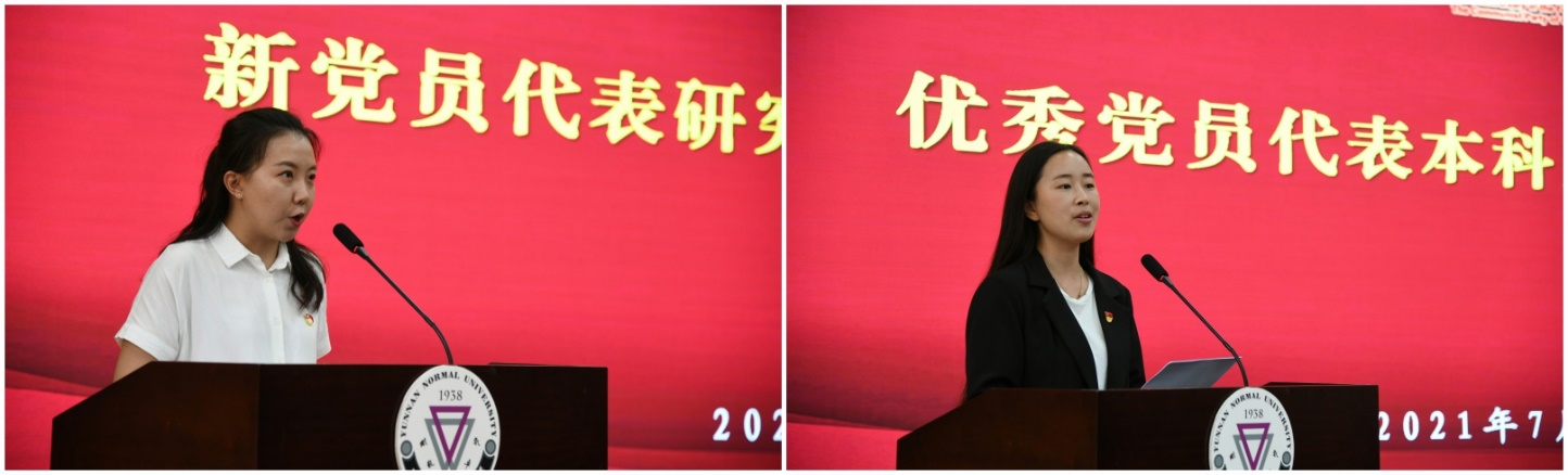 王艺璇同志代表新入党同志发言,侯璟同志代表受表彰个人发言。