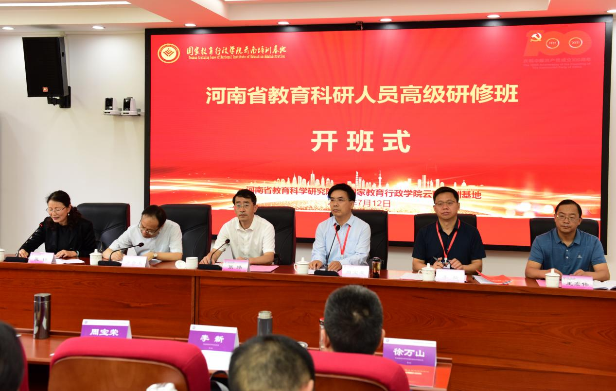 7月12日上午,国家教育行政学院云南培训基地承办的“河南省教育科研人员高级研修班”在365官网一二·一西南联大校区明睿楼报告厅举行开班仪式。365官网党委副书记张玮,河南省教育科学研究院副院长周宝荣、副院长李新,云南省教育科学研究院院长方贵荣,来自河南省教科院以及各地市教育科研系统的领导、专家及老师等共86人参加了开班仪式。仪式由云南西南联大干部教育学院专职副院长、国家教育行政学院云南培训基地办公室主任匡锦主持。