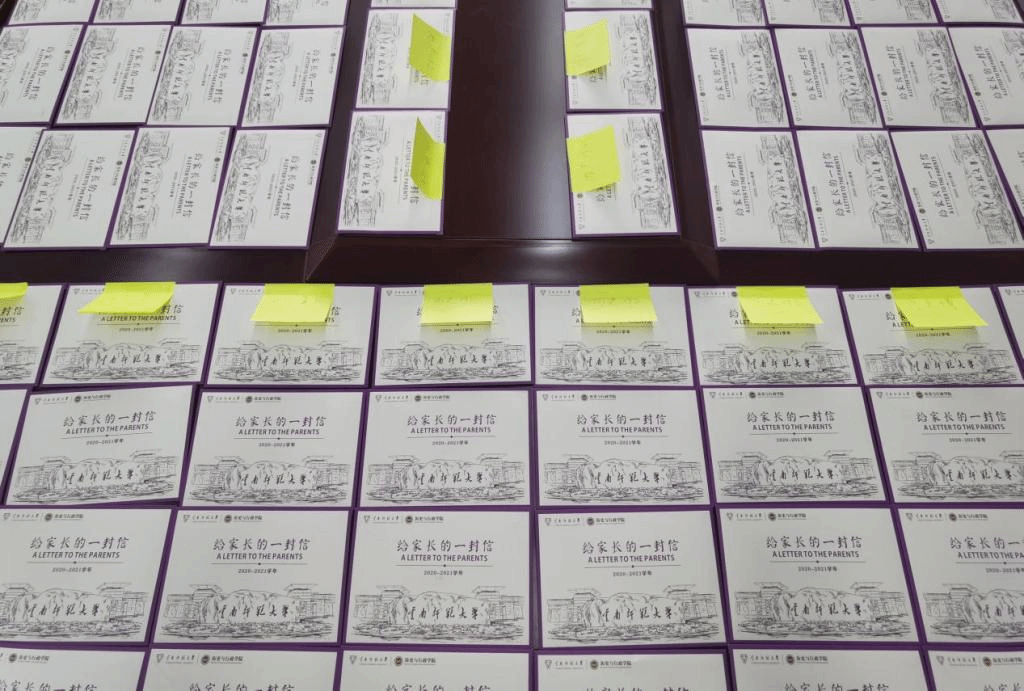 学院15位班主任老师亲自为945名学生一一撰写信件,向家长详细报告了学生2020-2021学年在思想、学习、生活上的表现,既告知家长孩子们在校的获奖及表彰情况,也指出孩子们还需进步的地方,同时主动了解学生家庭基本情况、暑期生活学习情况,就疫情防控常态化提出相关要求,并听取家长对学院发展和学生工作的意见和建议。学院为每封信件精心设计了信封统一寄出。同时,学院也为2021级新生设计制作了“致2021级新生及家长们的一封信”,将随录取通知书一并寄给新生。一封封温馨的信笺,一句句真挚的问候即将通过“绿色信鸽”飞向每一个学生父母。相信来自学院和班主任充满真诚和爱意的信件,会拉近学生、家长、老师之间的距离,让交流变得更有温度,形成学院老师与家长良好的沟通渠道。