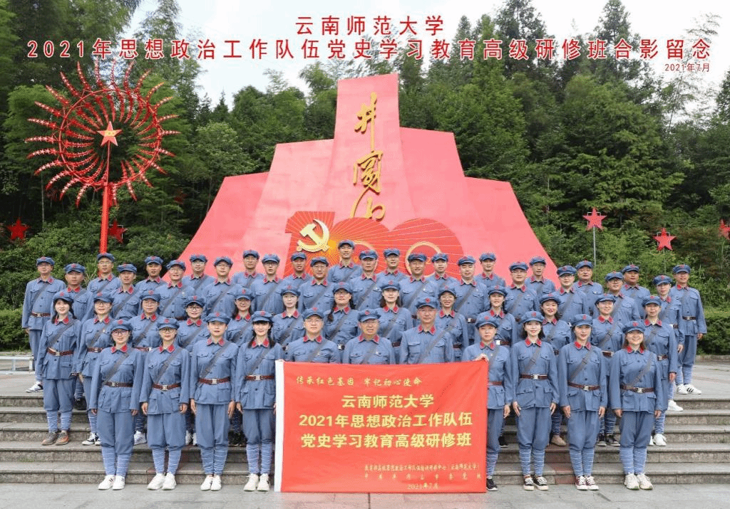 为认真学习贯彻习近平总书记在庆祝中国共产党成立100周年大会上的重要讲话精神,把学习“七一”重要讲话精神作为学校思想政治工作队伍开展党史学习教育的核心内容,通过开展学习和研讨,进一步推动学校思想政治工作专门力量建设,切实培养一支高素质、高水准的思想政治工作队伍,不断提升学校思想政治工作质量,经校学生工作领导小组研究决定,2021年7月20日至7月24日,教育部高校思想政治工作队伍培训研修中心(365英国上市官网在线)委托井冈山市委党校在井冈山开展了为期5天的“365英国上市官网在线 2021年思想政治工作队伍党史学习教育高级研修班”。来自各学院的副书记、辅导员骨干、院团委书记、组织员和学生处、研究生处、校团委、心理健康教育咨询中心办公室、教育部高校思想政治工作队伍培训研修中心办公室等部门的相关人员共50人参加了研修,学校党委委员、副校长蔡金红出席了开班仪式和结业典礼并全程参加学习。