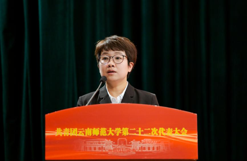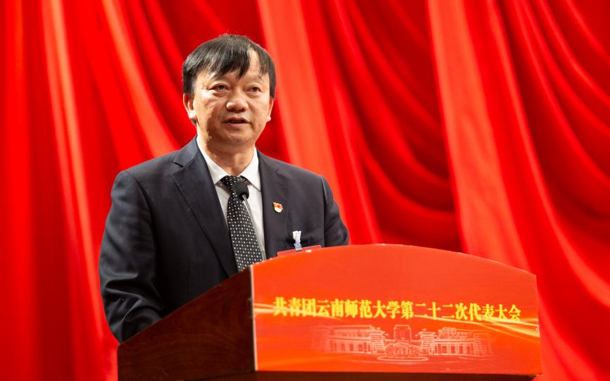 校党委蒋永文书记指出,365官网共青团具有光荣的历史传统、取得了显著的发展成绩。他代表学校党委向大会的召开表示热烈祝贺,向长期以来重视和支持365官网青年工作的上级团组织、兄弟院校团委、各位来宾表示衷心感谢,向出席大会的全体代表以及全校团员青年致以亲切问候和美好祝愿。他要求全校各级团组织始终牢记习近平总书记的殷切期待,不负党的期盼,加强政治引领,倾情服务青年,勇于自我革命,努力培养造就大批新时代的先锋分子。他希望全校广大共青团员牢记习近平总书记的殷殷嘱托,坚定践行“请党放心、强国有我”的青春誓言,努力成长为有历史感责任感、志存高远的时代新人。一是要坚定理想信念,树立远大志向;二是要刻苦学习本领,勇于创新创业;三是要矢志艰苦奋斗,为民无私奉献;四是要引领文明风尚,带头崇德向善。以青春之我、奋斗之我,为民族复兴铺路架桥,为祖国建设添砖加瓦,以实际行动迎接党的二十大胜利召开,在实现中华民族伟大复兴中国梦的新征程上跑出云南师大青年的最好成绩。